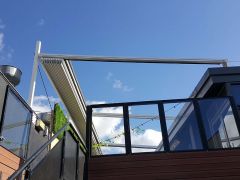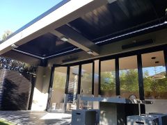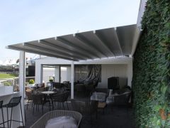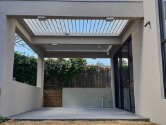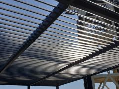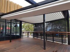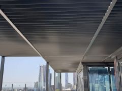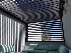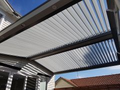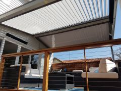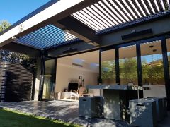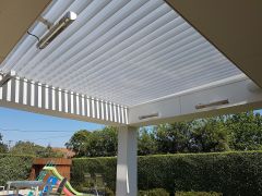 LouvreLux provides and intelligent all in one solution for complete protection against rain and hail or shine with all systems completely waterproof and rain censored automtically interlocking at the first sight of rain. Keep cooling costs to a minimum in summer with natural convection drawing warm air up through the open louvres to provide cool ventilation below or simply open partially for ample shaded comfort and protection by eliminating sun exposure.