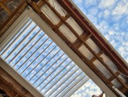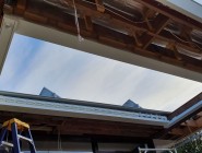 With dimensions undertaken carefully and with precision the build went according to plan, upon arrival we packed out the two ends and bolted the motor and projected side beams to the structural timber in the void before carefully raising the heavier gutter beams containing the louvre components into their required positions via duct lifter. Minor adjustments to the connection details had to be made due to access from the roof and once fastened we were able to position the motors and undertake the electrical fit off for multiple lighting LED extras. Each Aerolux system is fitted with two Somfy Motors, one for the Tilt function and second for the retract function.