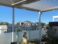 Aluminum beams where powder coated to match and screwed to the existing pergola along with extensive flashing and guttering work to accommodate the circular building form and other structures. Louvres where cut to size on site with bays considerably varying in size to accommodate surroundings however once completed the combination of Jasper flashings and gutters with Pearl White Louvres looked stunning instantly providing a noticeable edge and premium upgrade to the penthouse apartment not only providing an undisturbed view with complete weather control but doing so whilst looking even better from the streets below.