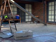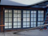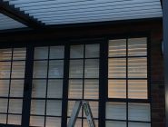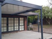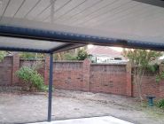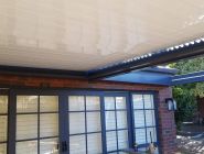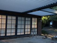 Our build started with bolting our Ironstone aluminum which followed the existing house colour to the brickwork and working our way off the house with careful connection detailing on the bay closest to the house accommodating for an existing downpipe and C- Section steel facia beam. Our posts where positioned at the furthest point on the concrete slab with bolt down possible due to the thickness. Final frameworks saw the first Louvre bay at an almost 5000mm projection whilst the second finished at 2860mm both with identical widths of 2850mm. Tracks where installed with motor connection running through the central beam and into the roof of the house and louvres where cut to size and positioned in Pearl White.